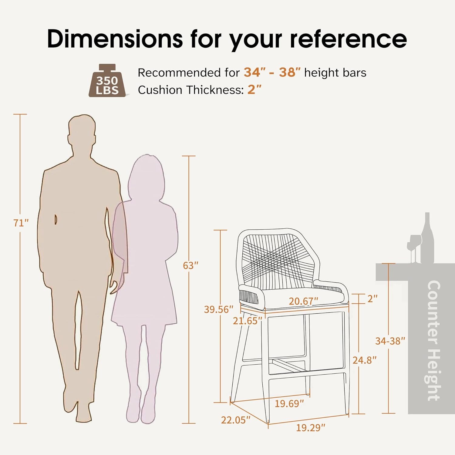 Customers say Customers find these bar stools to be of great quality, sturdy, and comfortable, with one customer noting the heavy-duty poly rope keeps its